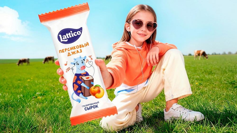 В качестве центрального элемента был выбран фирменный персонаж — корова-музыкант. Поза коровы на упаковке, инструмент, на котором она играет, её внешний вид и настроение передают характер вкуса. Это не просто рисунок — это настоящий солист оркестра Lattico.